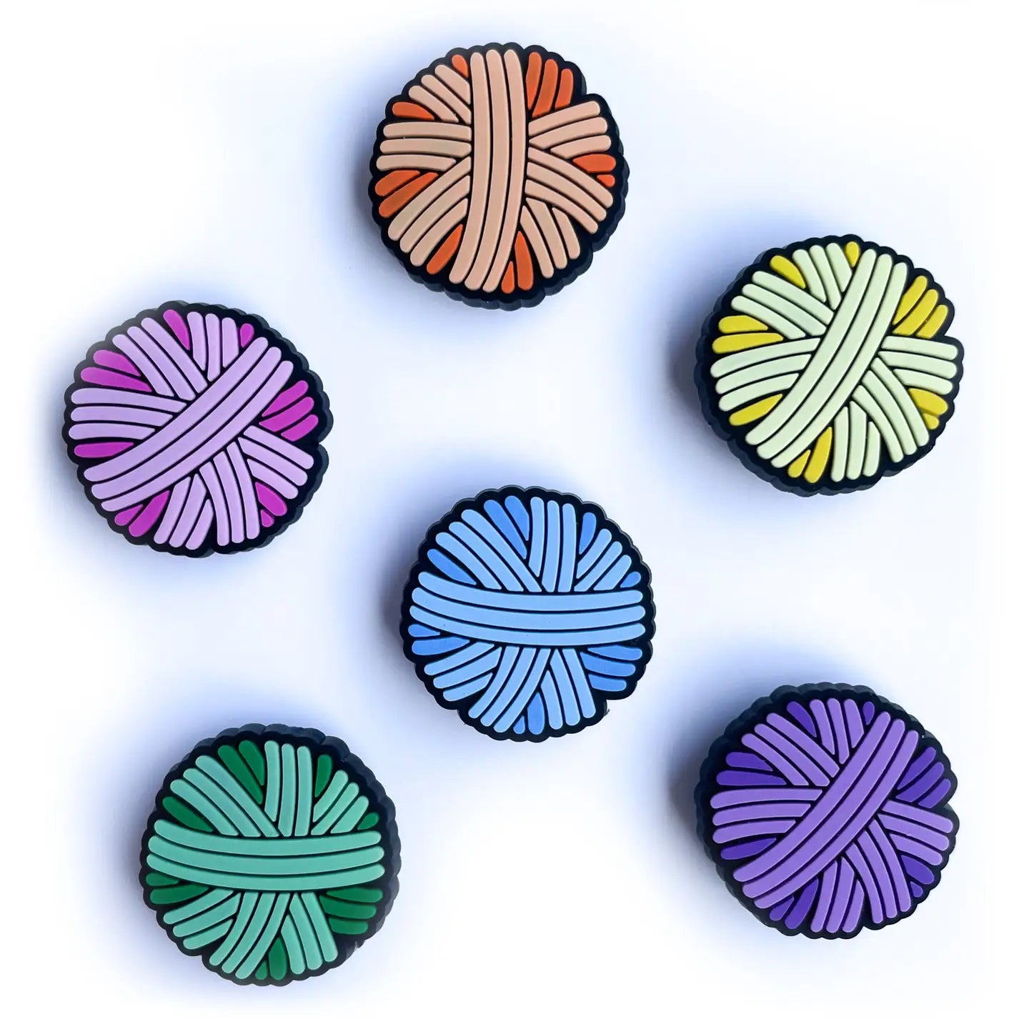 Deck out your shoes with this cute set of pastel rainbow yarn balls! These look awesome paired with hand knit socks. You get a pink, orange, yellow, mint, blue, and purple yarn ball! Charms fit in Crocs or other shoes with 8mm holes. They are professionally made out of PVC and are made to be durable!