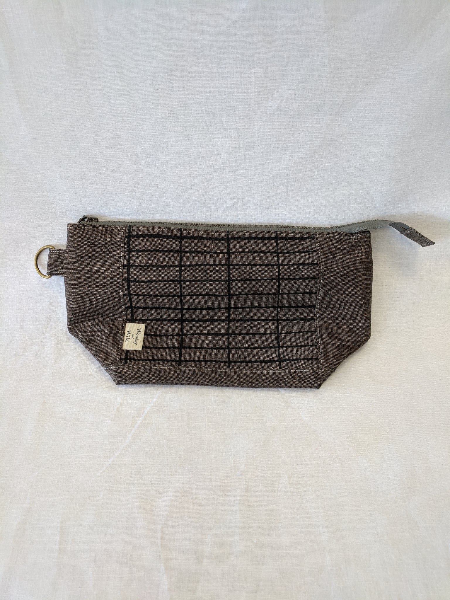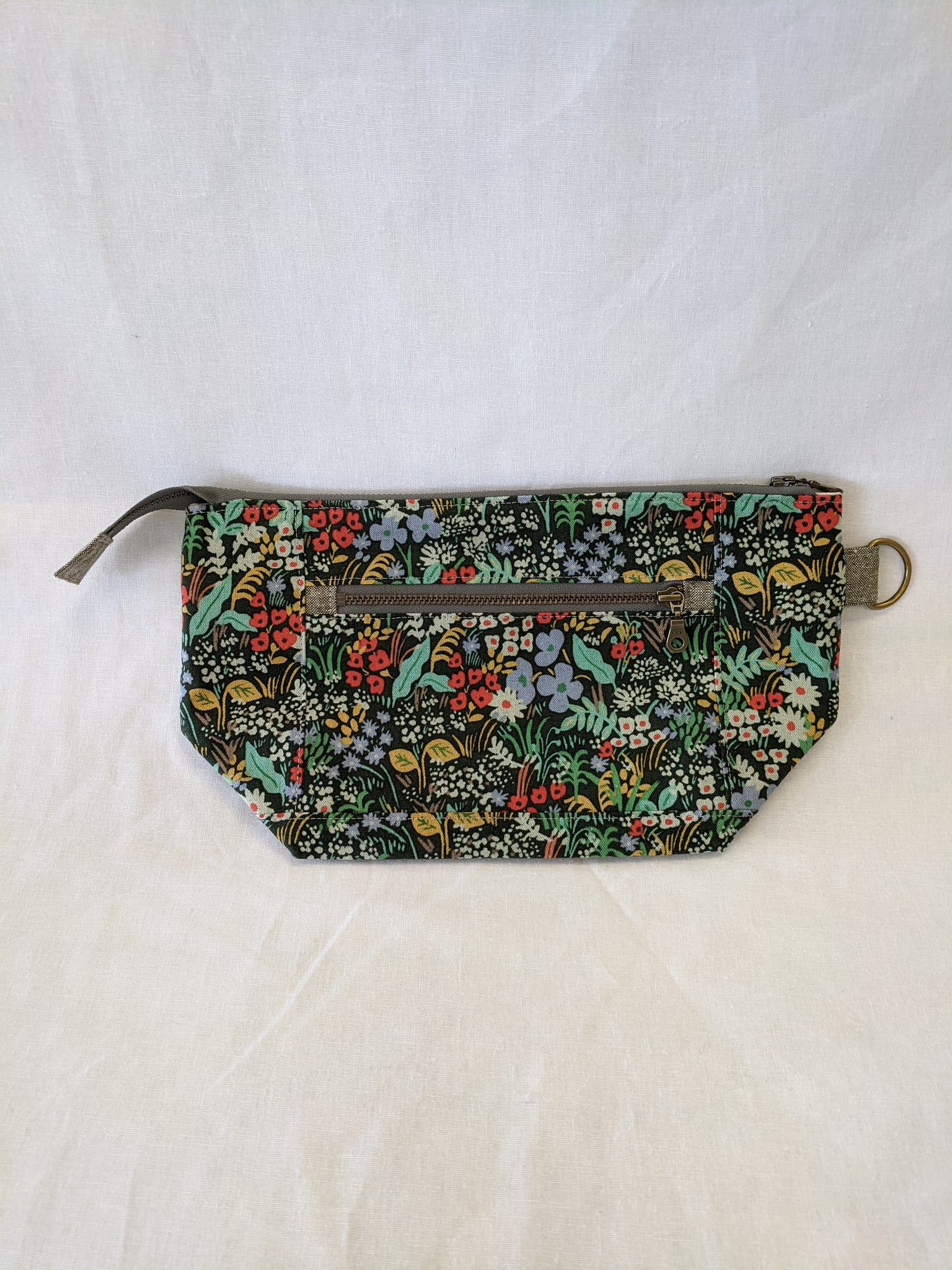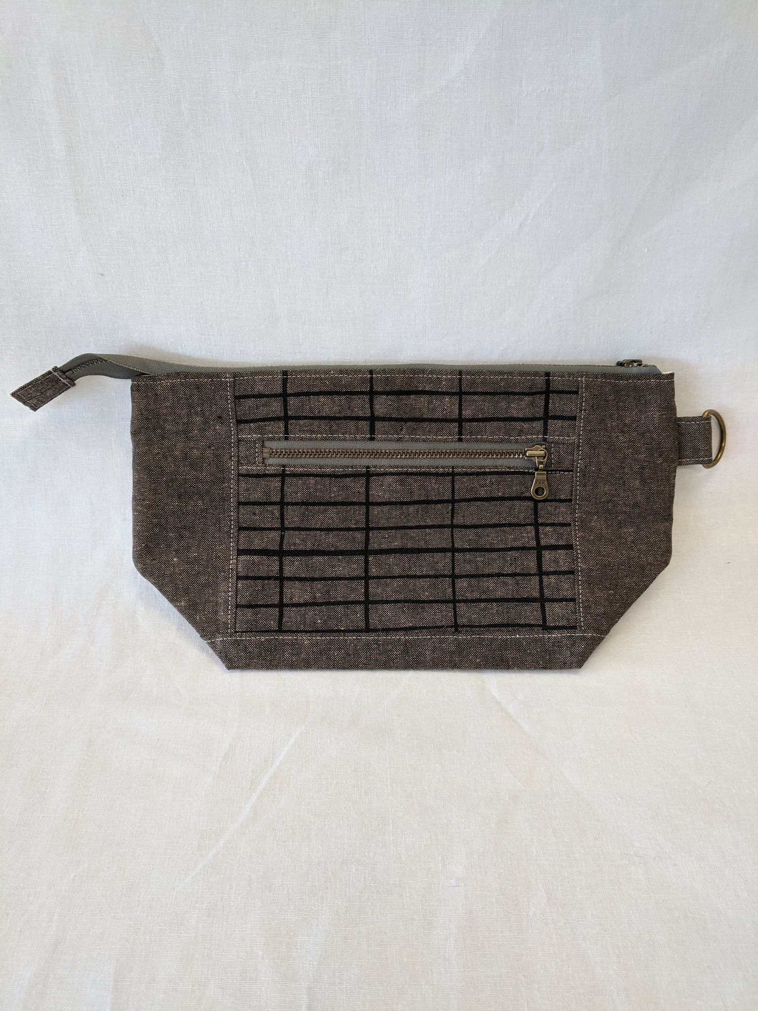 Fully lined with no exposed seams. Made with high quality, sturdy linen/cotton lightweight canvas. Zippers and all findings are solid metal with an antiqued brass finish. Spot clean or machine wash and lay flat to dry, iron as needed to smooth and restore shape. Some shrinking may occur on first washing.