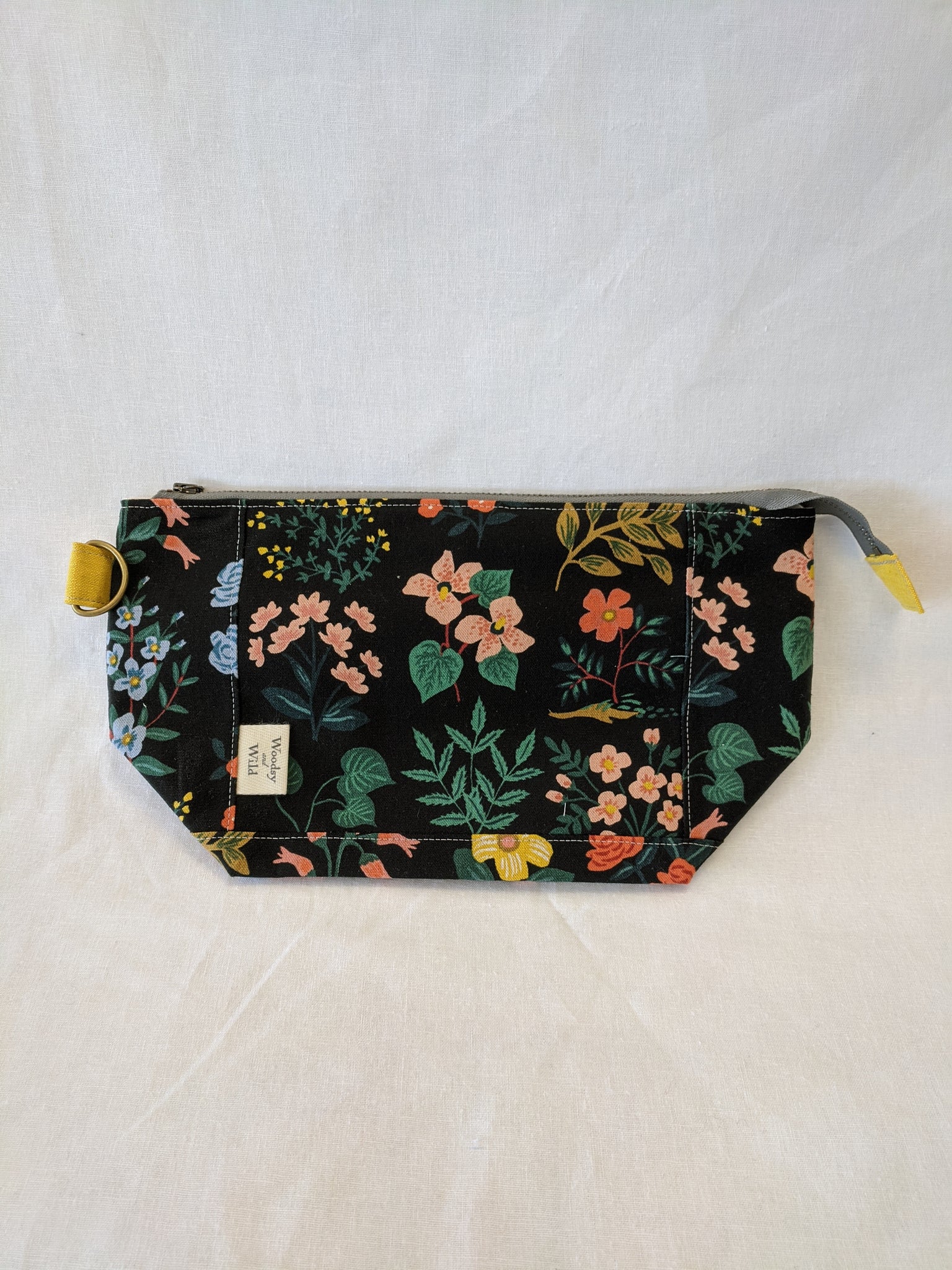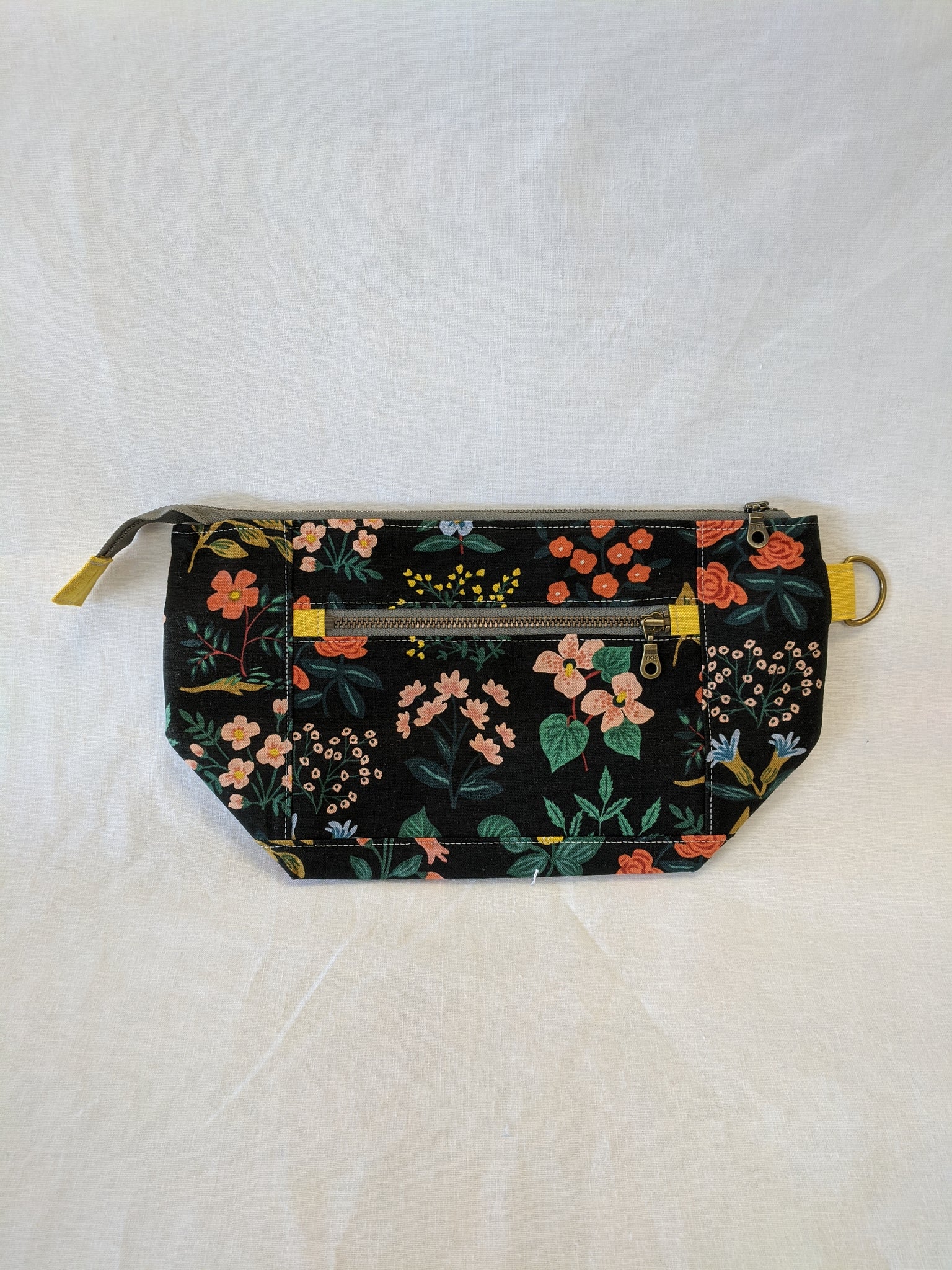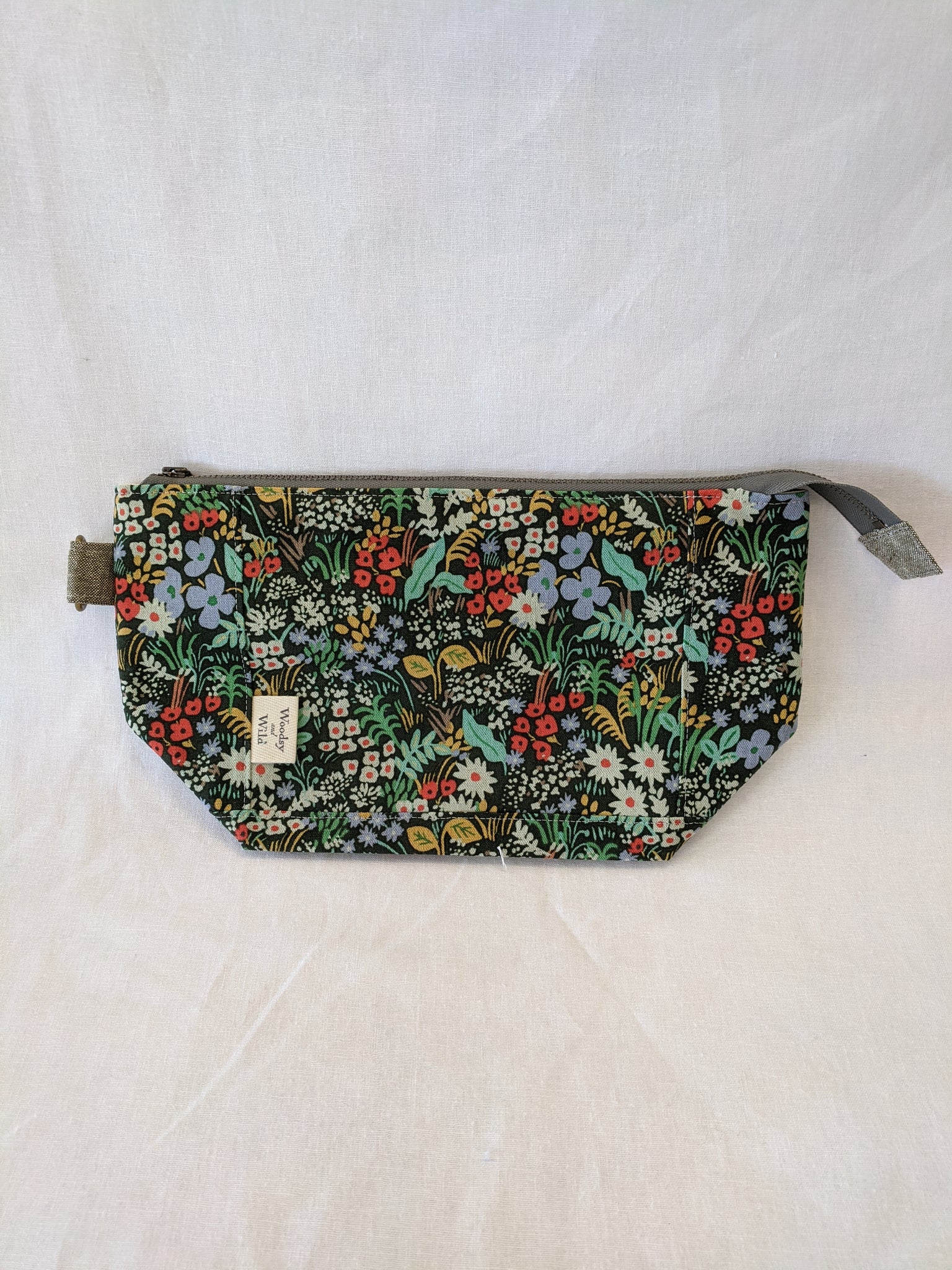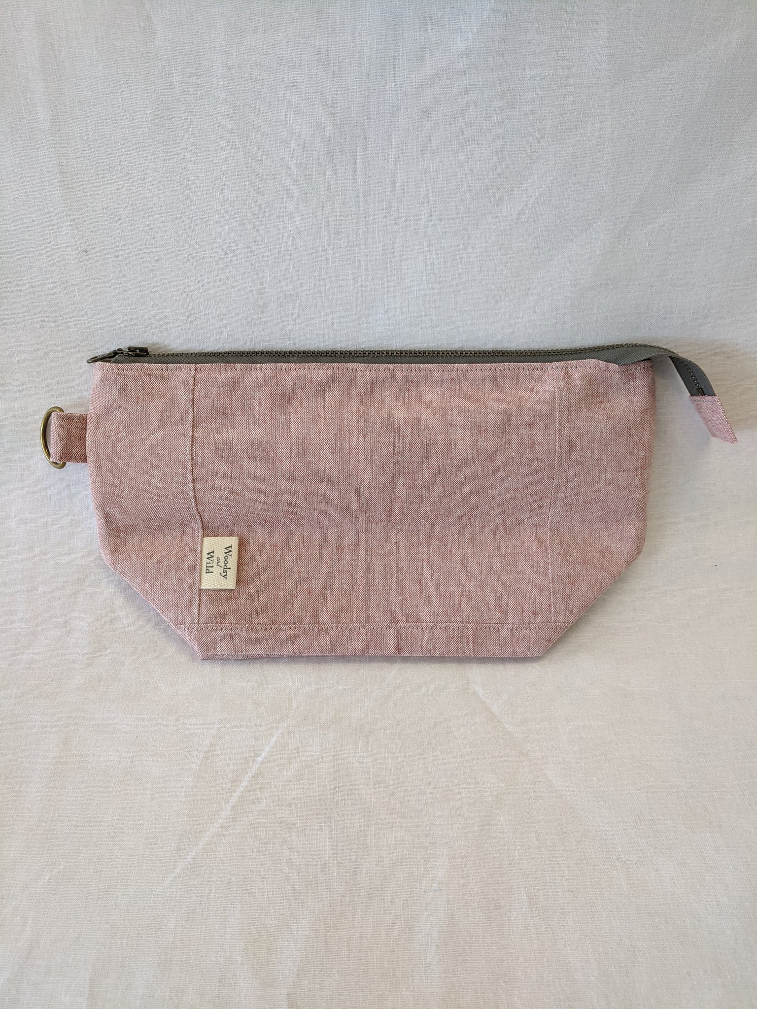 Fully lined with no exposed seams. Made with high quality, sturdy linen/cotton lightweight canvas. Zippers and all findings are solid metal with an antiqued brass finish. Spot clean or machine wash and lay flat to dry, iron as needed to smooth and restore shape. Some shrinking may occur on first washing.