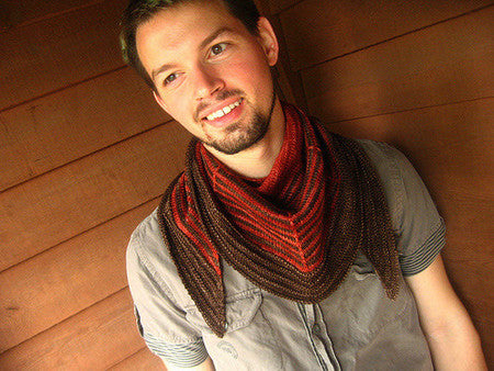 Daybreak is a semicircular shawl featuring clear, graphic stripes that echo a rising sun. The generous wingspan allows the fabric to drape comfortably around your shoulders and neck. There is plenty of room to play with color in the three sections of this arched shawl.