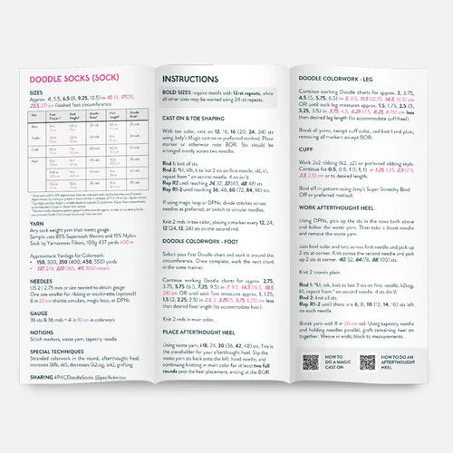 The toe-up BASE DOODLE SOCK is going to be one of your new favorites! Simple construction, but easy to modify and ready to add tons of colorwork. Whether you want to add just a little colorwork detail near the ends, or knit a pair for every theme, this is a perfect pattern to get creative with!