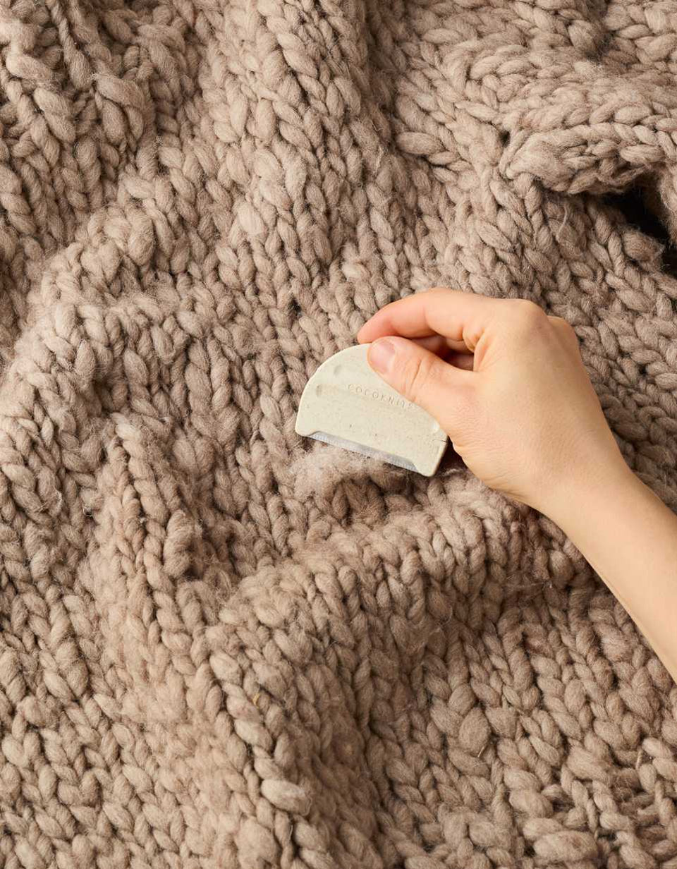 Gently glide in one direction along the surface of your knitting or fabric. It is perfect for removing troublesome pills and fiber fuzz on handmade and store-bought knits.