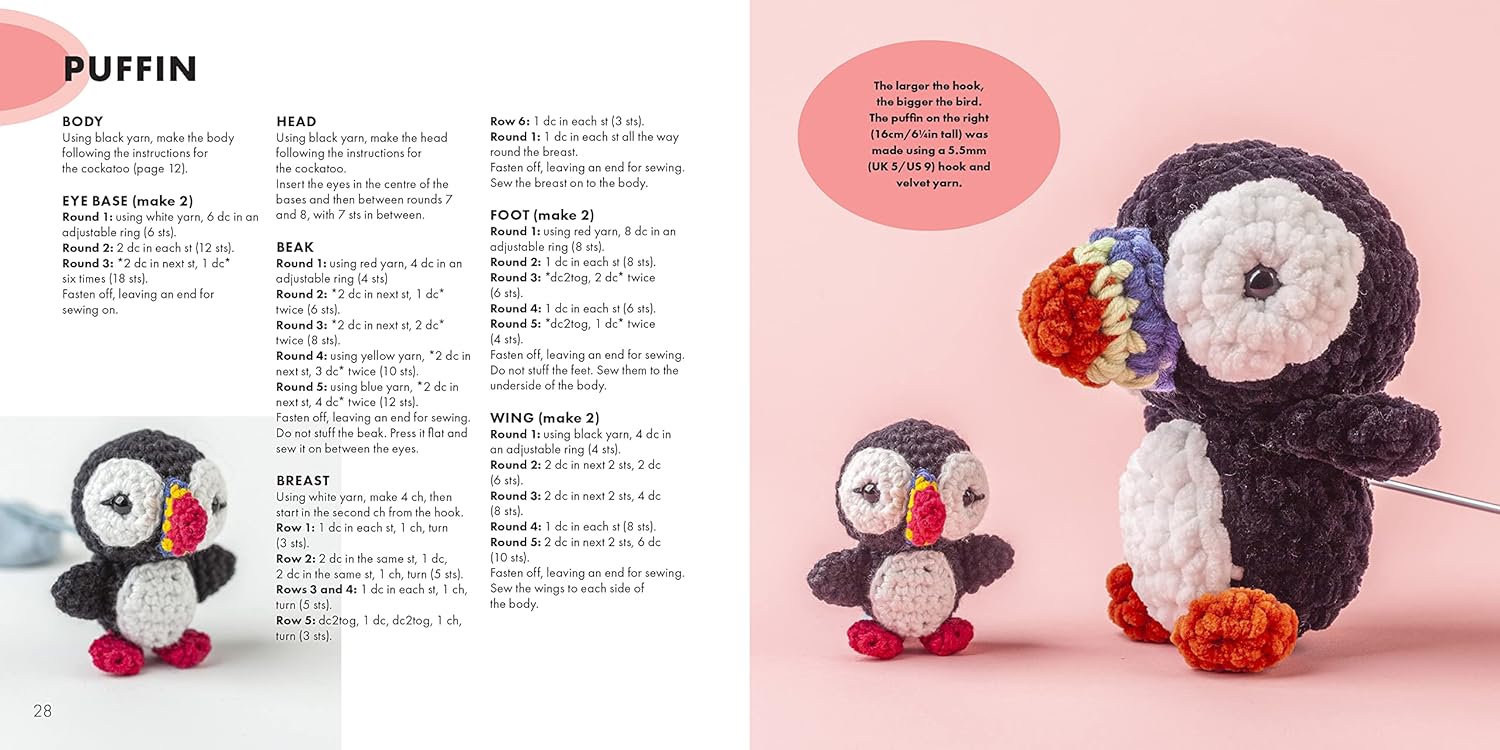 Cute and cuddly amigurumi birds from the bestselling author of Mini Amigurumi Animals. Complete your menagerie with this flock of 25 birds! This charming book is full of cute and characterful birds to crochet. Choose from a vibrant peacock, puffin or flamingo, an adorable penguin, or a striking emu or swan. Attach your finished birds to purses, key rings, baby buggies or baby mobiles. There are 25 tiny birds to make and collect, and even a little egg to complete the set! All you need is a crochet hook, some yarn, and a few basic crochet techniques, which are clearly explained to get you started. Which one will fly off your hook first?