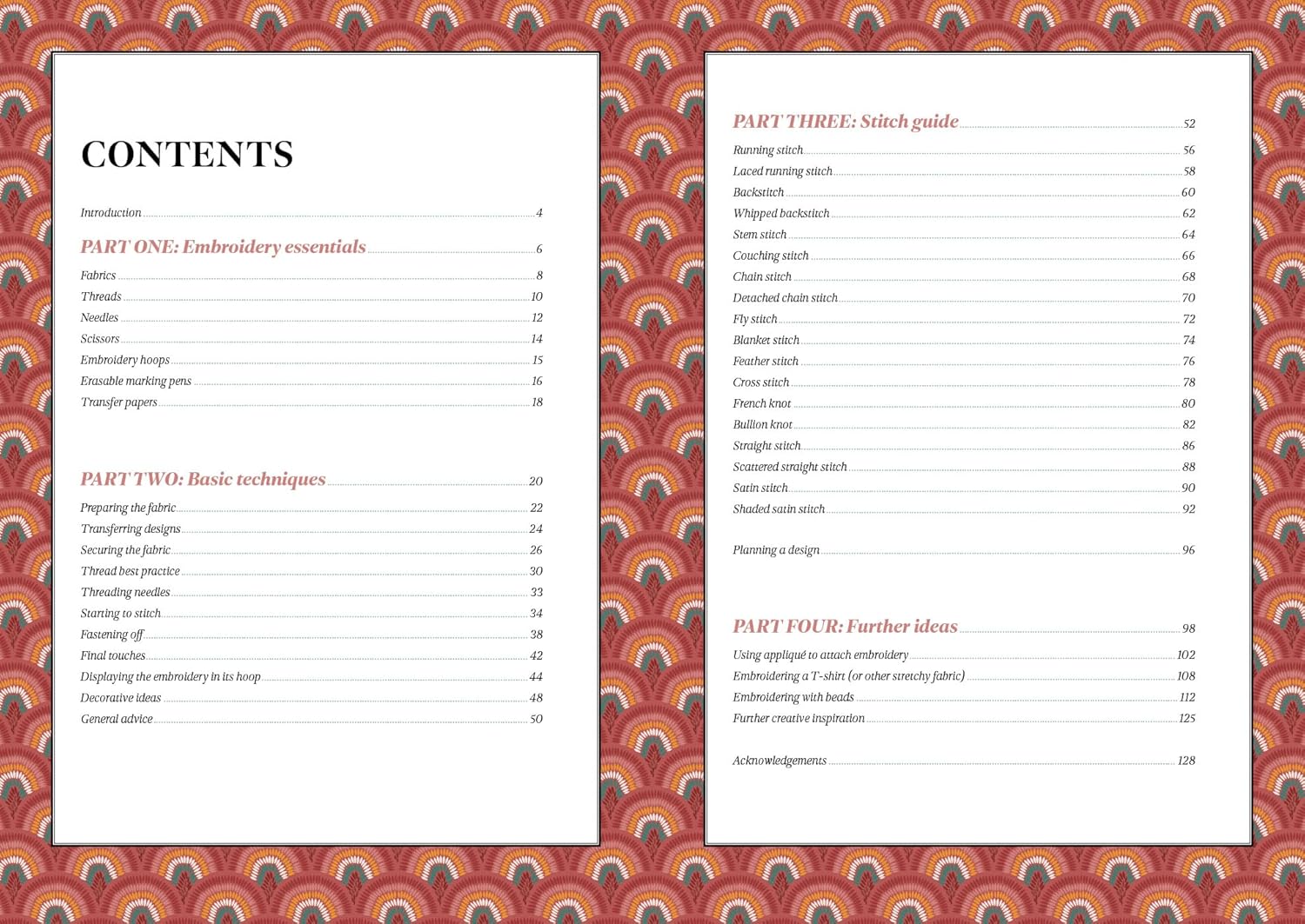 Dip in and out of the book as you wish and follow your own creative embroidery aspirations! The book starts out by introducing all that you may need to become an embroiderer, and then explains the basic techniques, for preparing your fabric, threading the needle, and even displaying your work in a hoop.