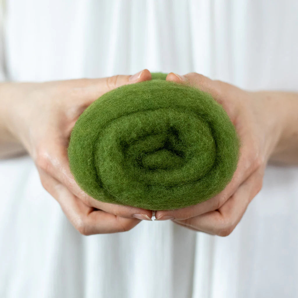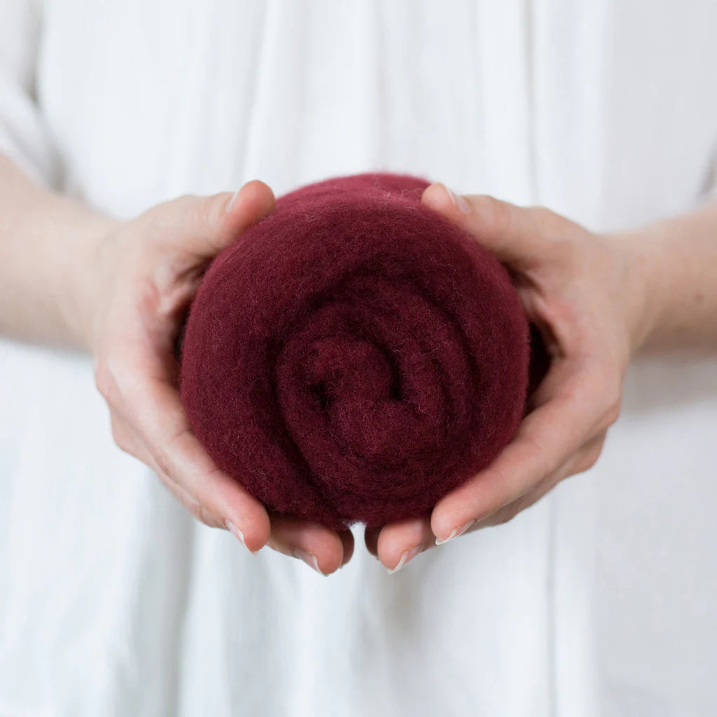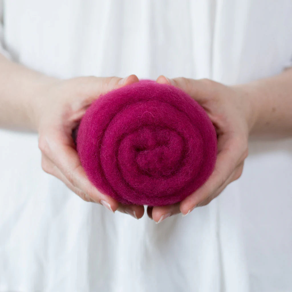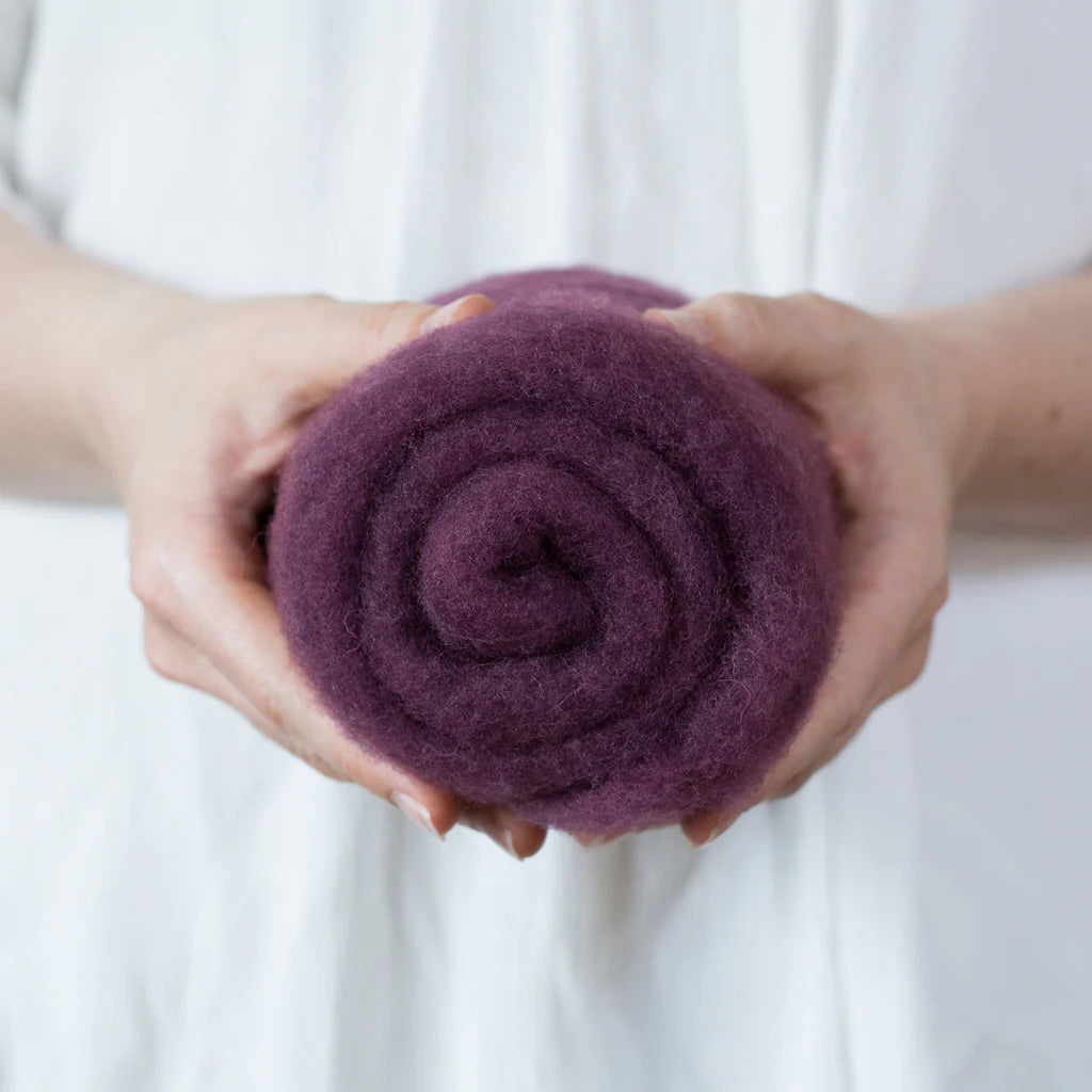 This felting Wool is 100% made in USA (including the fiber!) unlike many of the other felting batts on the market. If you love supporting small scale domestic production, you can feel good about this product. 40% of the wool in these batts is merino from Texas, and 60% is a mix of medium grade wool from the Eastern US. It is small batch dyed and carded on a beautiful farm in Central Kentucky.