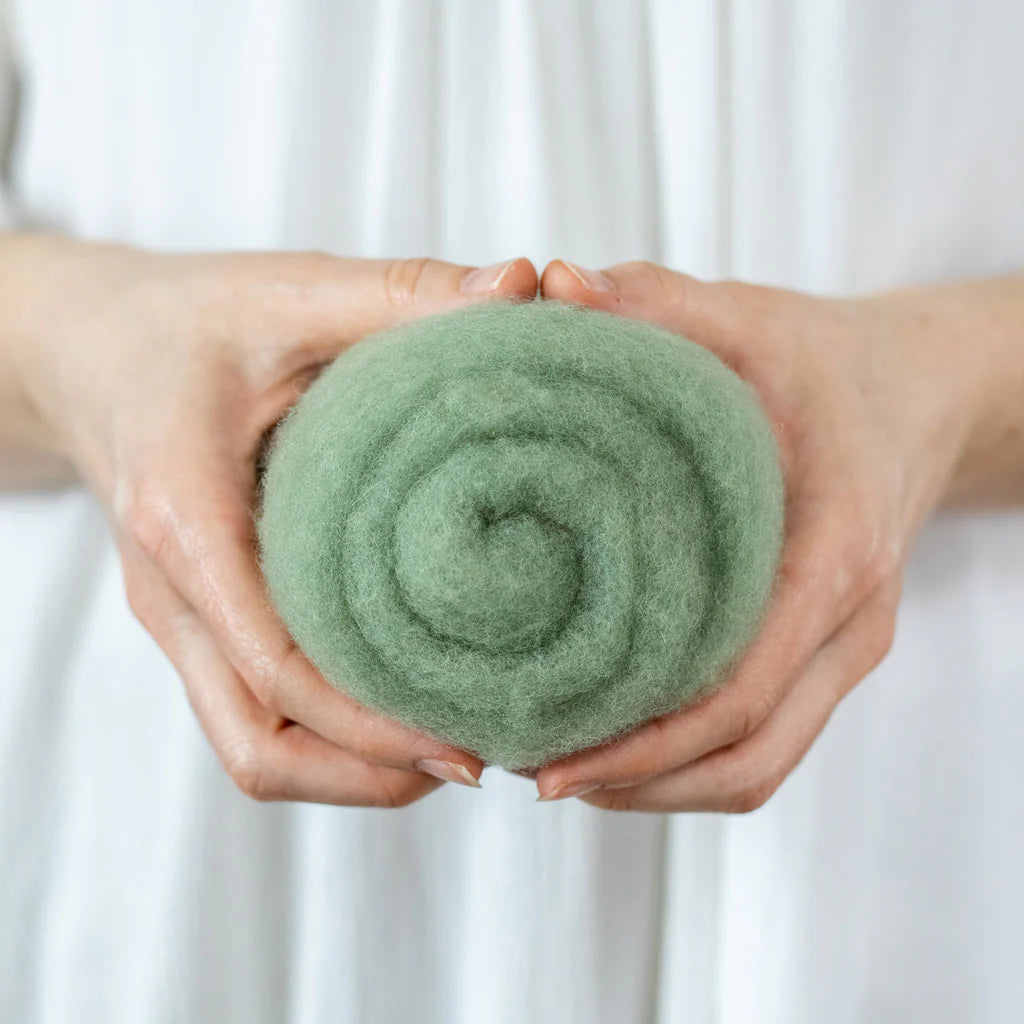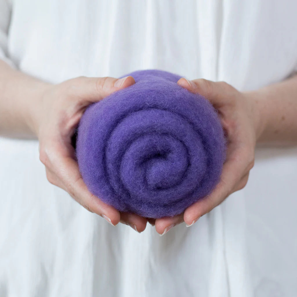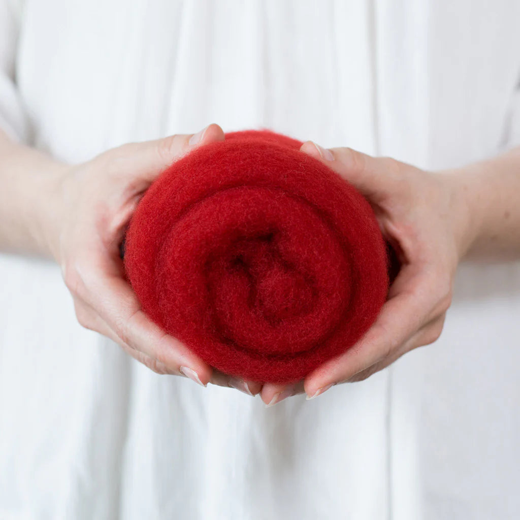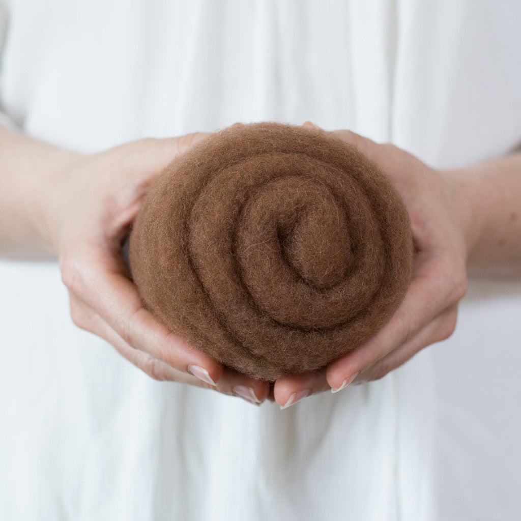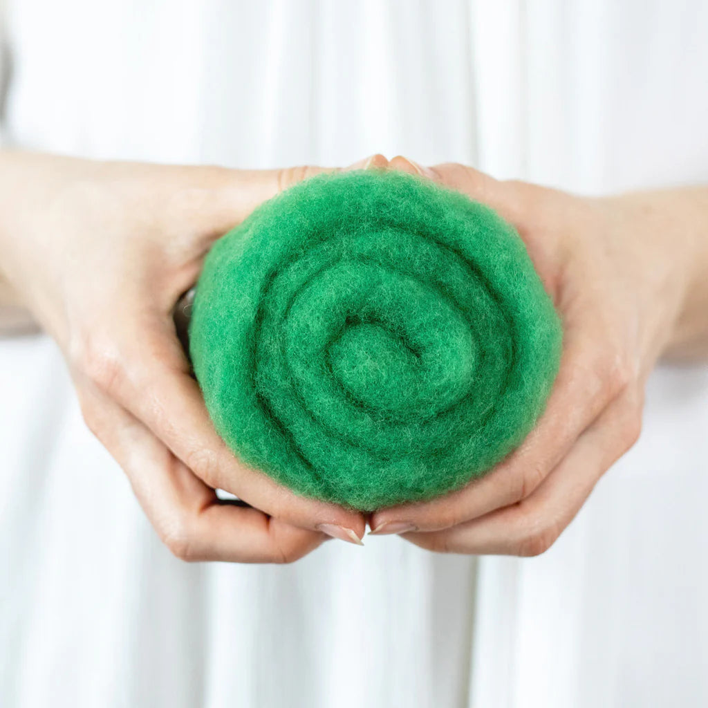 This felting Wool is 100% made in USA (including the fiber!) unlike many of the other felting batts on the market. If you love supporting small scale domestic production, you can feel good about this product. 40% of the wool in these batts is merino from Texas, and 60% is a mix of medium grade wool from the Eastern US. It is small batch dyed and carded on a beautiful farm in Central Kentucky.