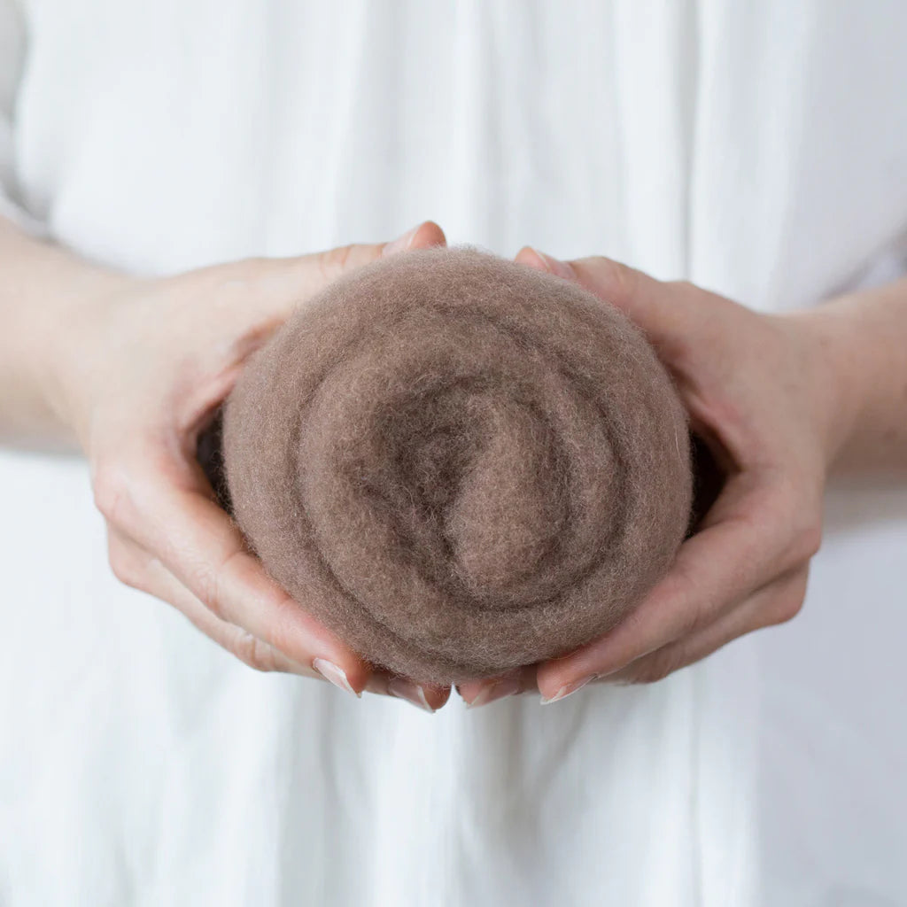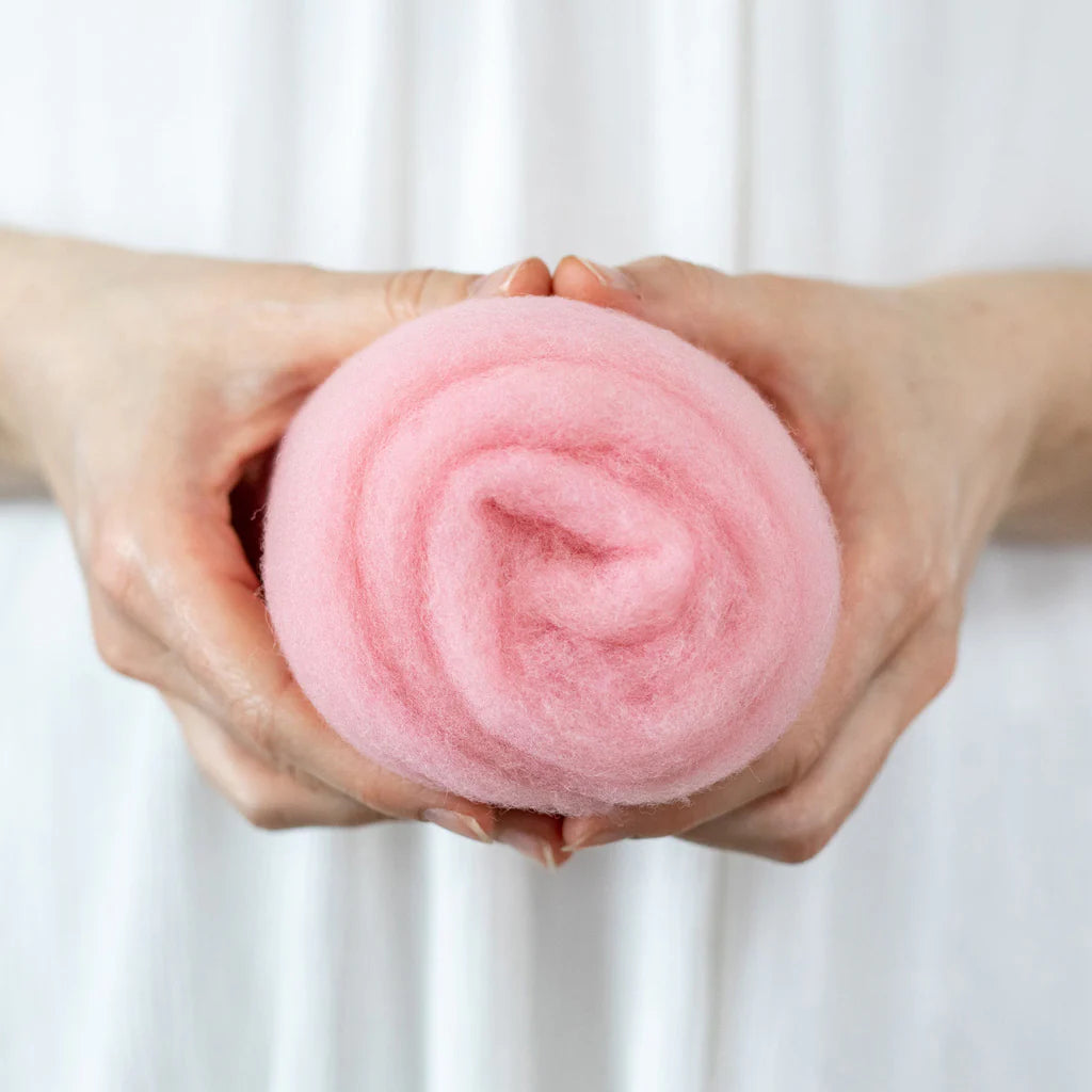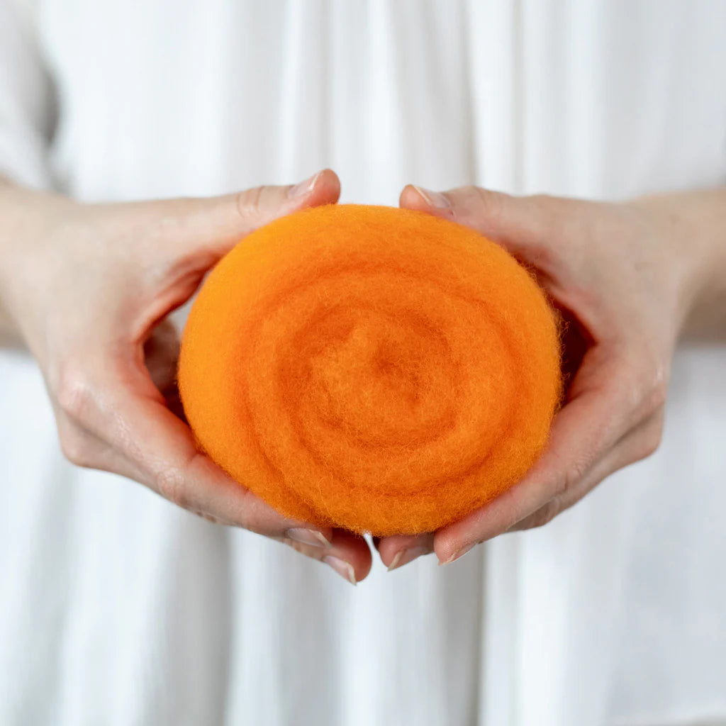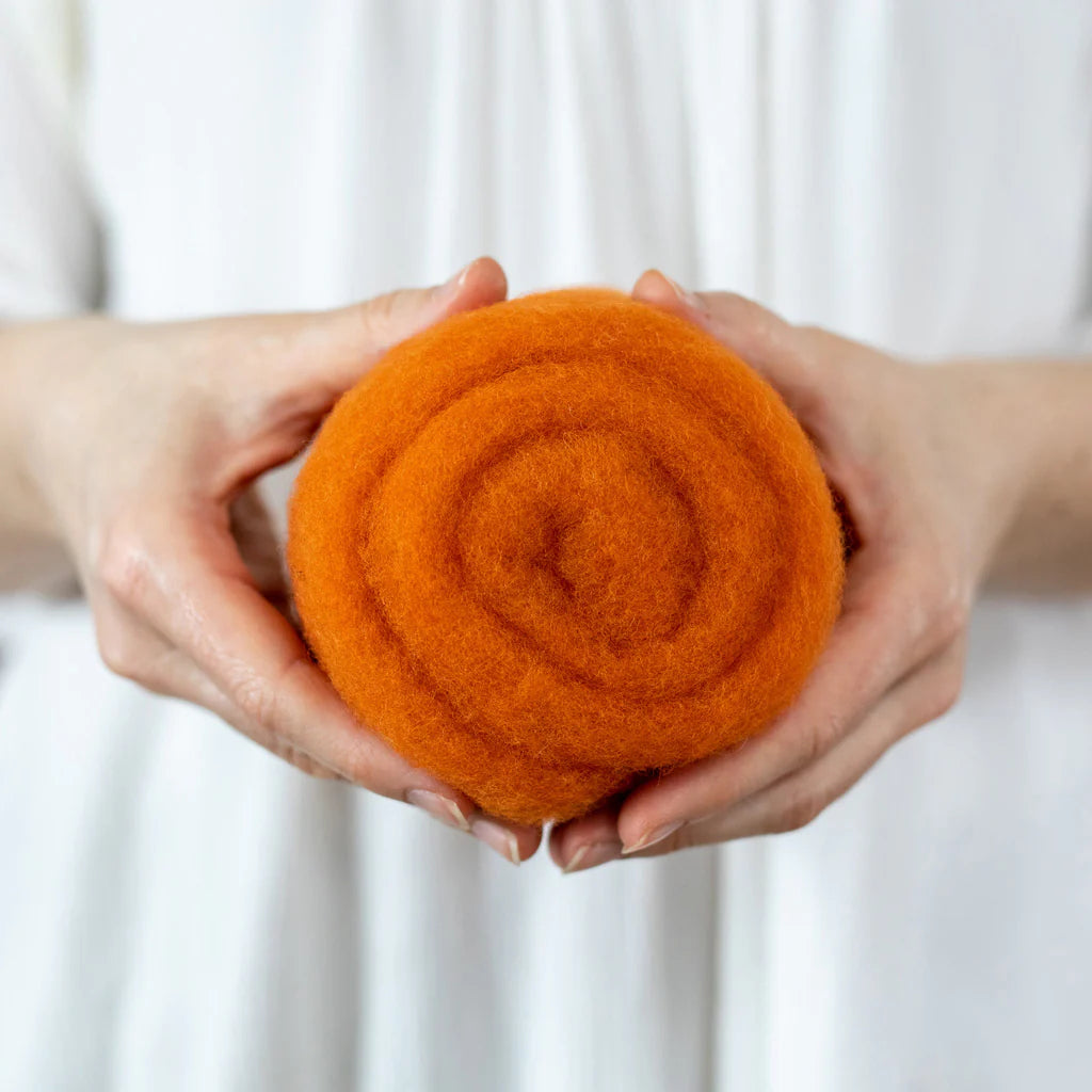This felting Wool is 100% made in USA (including the fiber!) unlike many of the other felting batts on the market. If you love supporting small scale domestic production, you can feel good about this product. 40% of the wool in these batts is merino from Texas, and 60% is a mix of medium grade wool from the Eastern US. It is small batch dyed and carded on a beautiful farm in Central Kentucky.