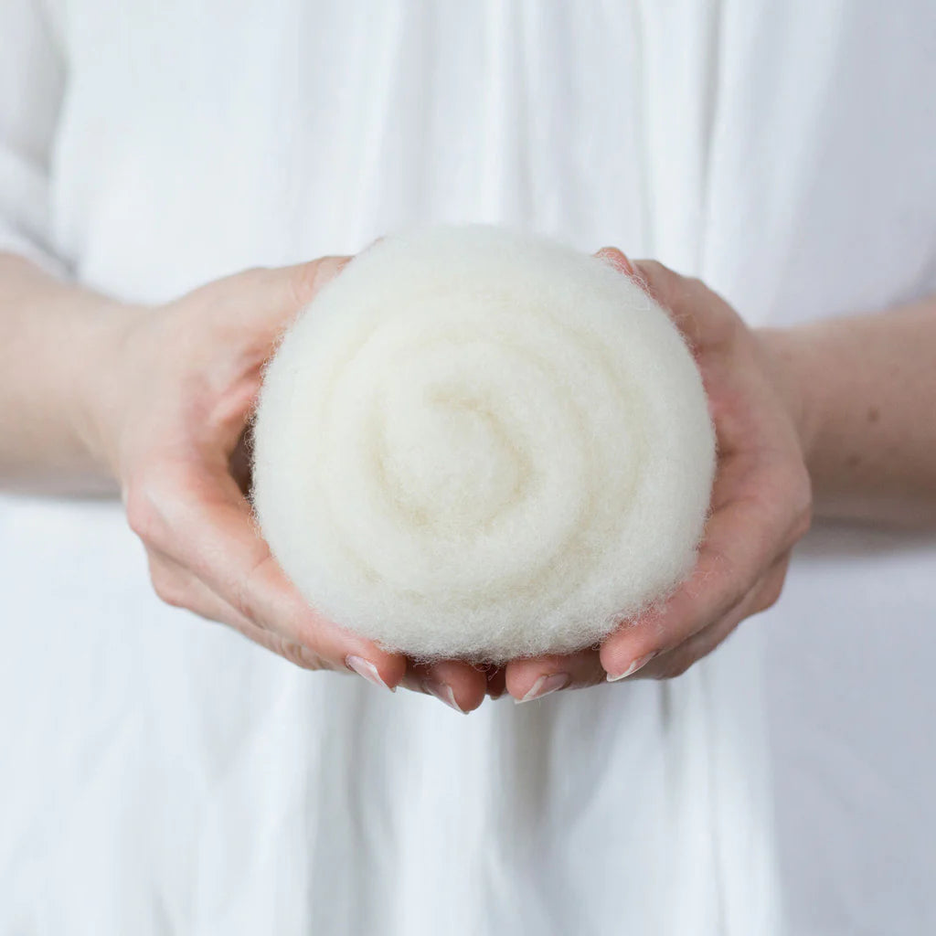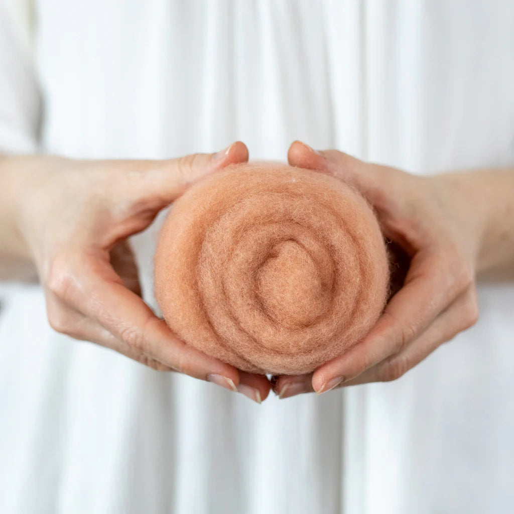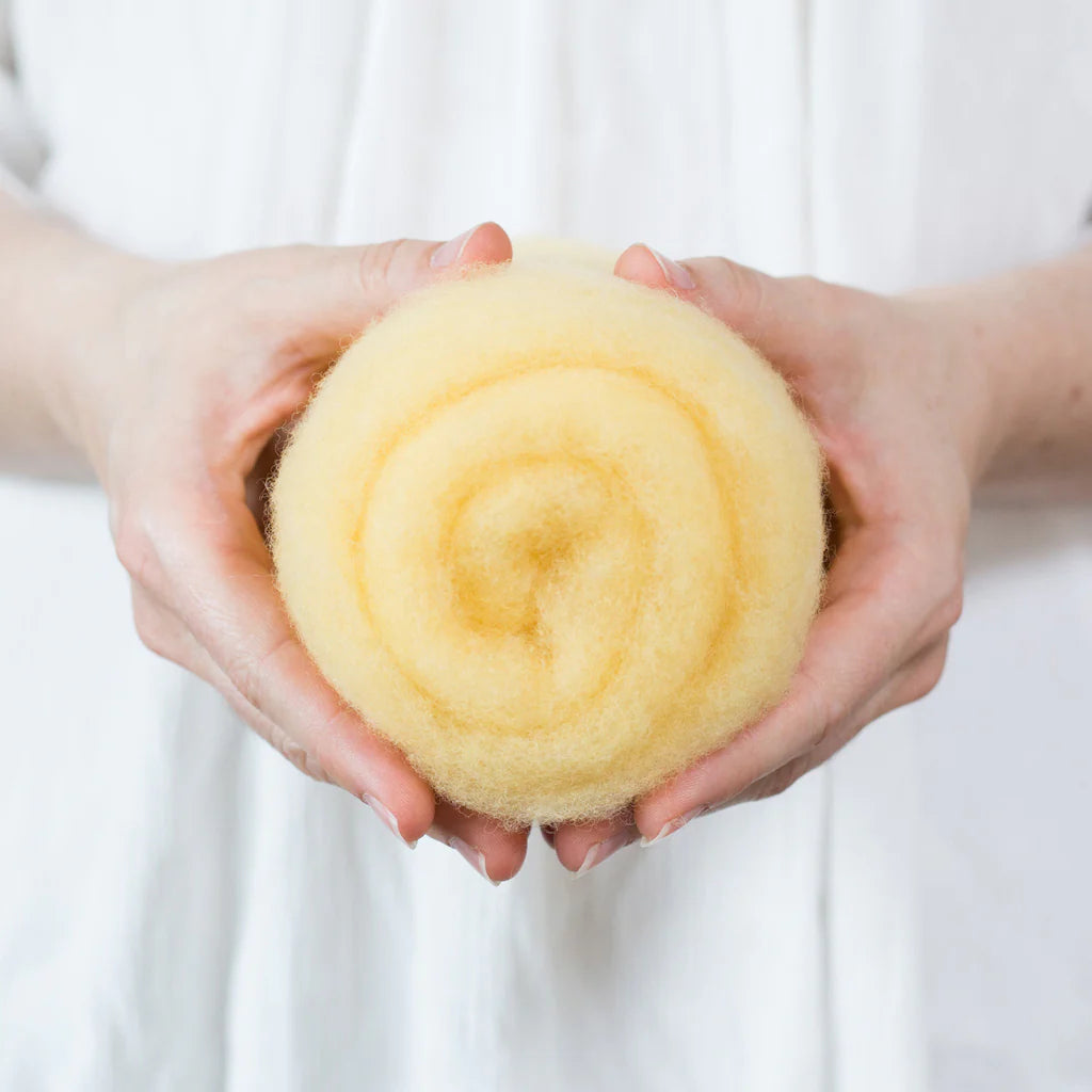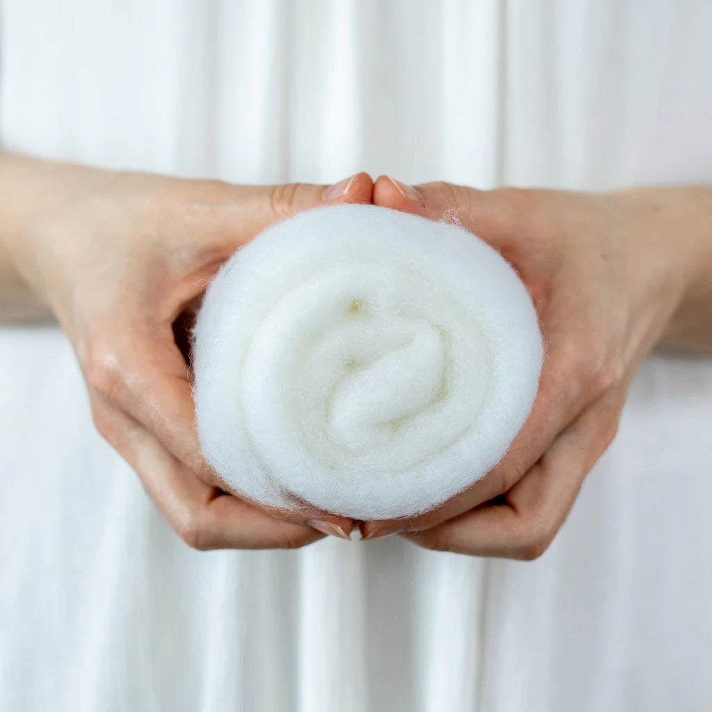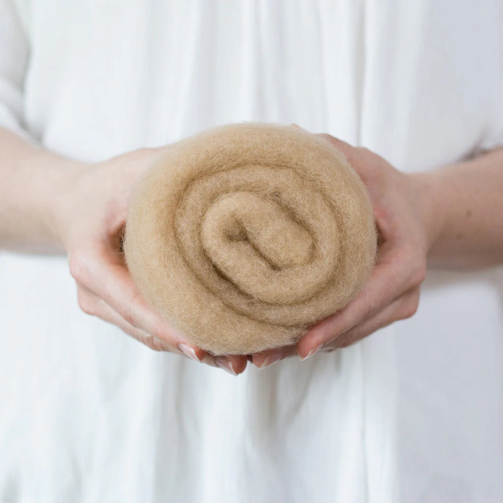 This felting Wool is 100% made in USA (including the fiber!) unlike many of the other felting batts on the market. If you love supporting small scale domestic production, you can feel good about this product. 40% of the wool in these batts is merino from Texas, and 60% is a mix of medium grade wool from the Eastern US. It is small batch dyed and carded on a beautiful farm in Central Kentucky.