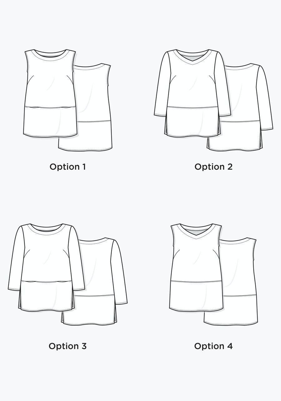The Uniform Tunic is designed as a choose your own adventure sewing pattern. While we have provided four options for you, the possibilities are endless as all of the design features are mix and match! Choose your favorite neckline and skirt, decide between sleeves or sleeveless, add pockets — you can’t go wrong!