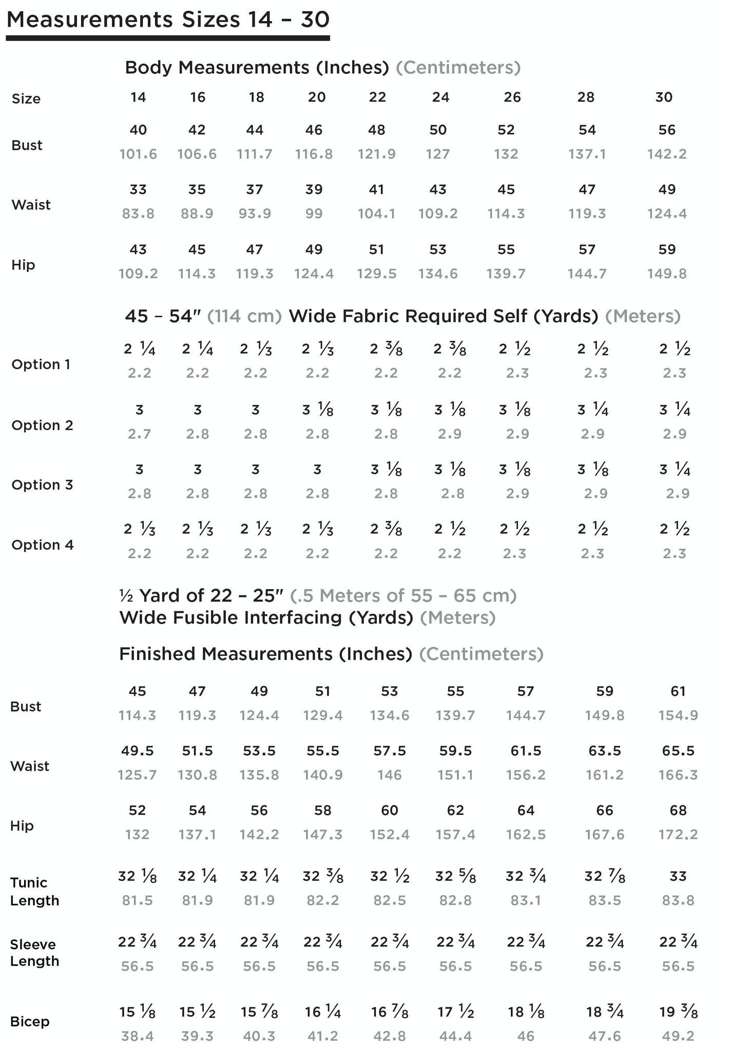 Suggested Fabrics: Light to medium weight woven fabrics such as cotton, linen, voile, chambray, etc. Extra fabric may be needed to match plaids, stripes, or one-way print designs.