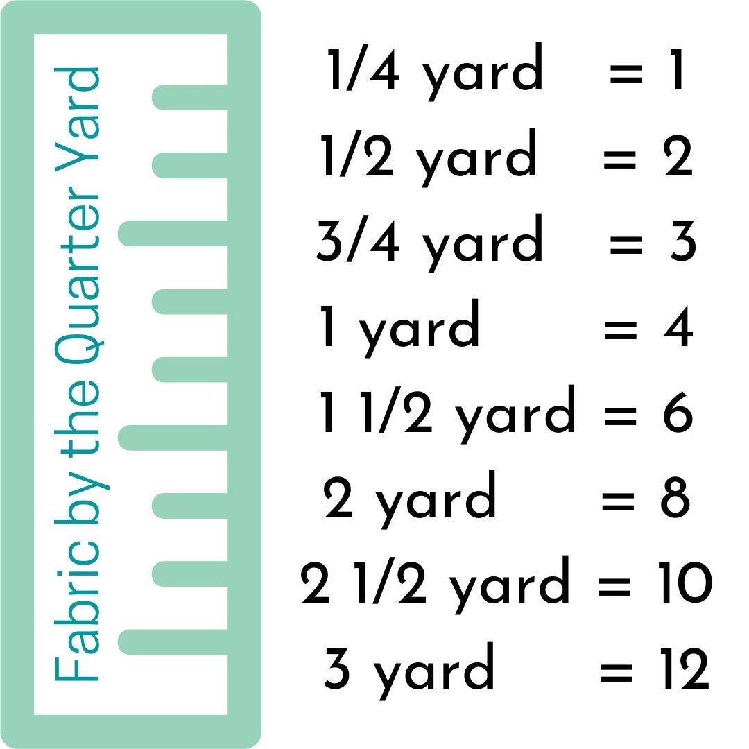 Fabric is priced & sold by the 1/4 yard. If you would like to purchase more than 1/4 yard please increase the quantity to create one continuous cut of fabric.