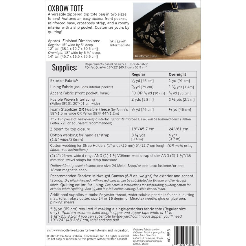 Noodlehead Oxbow Tote Pattern