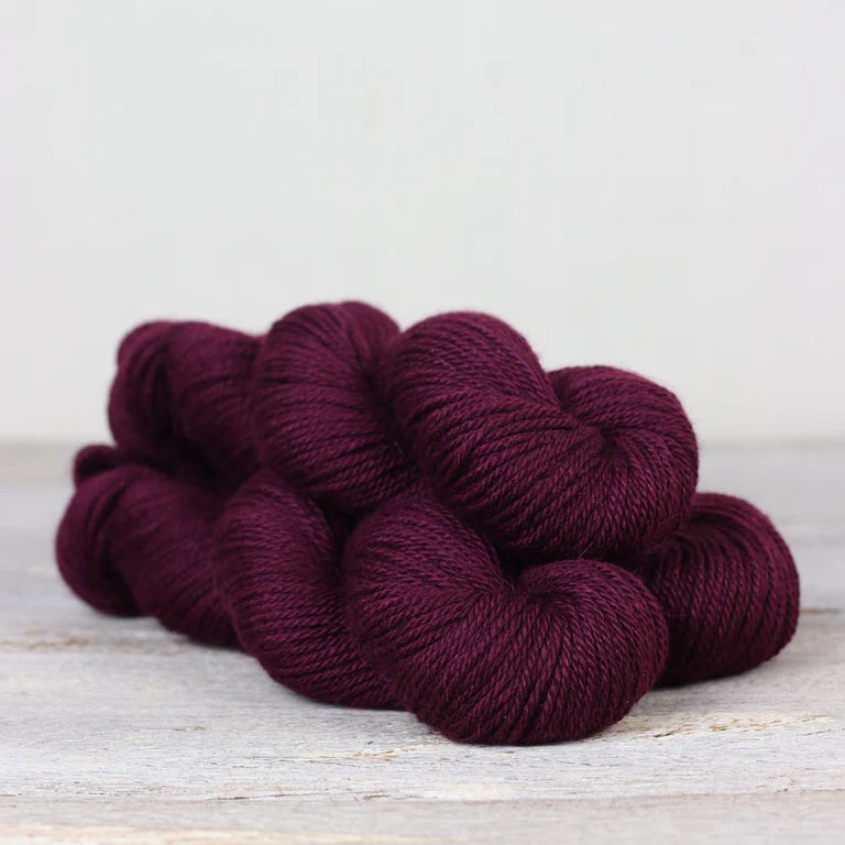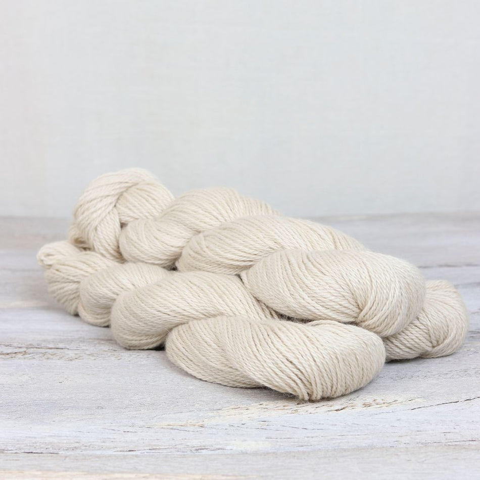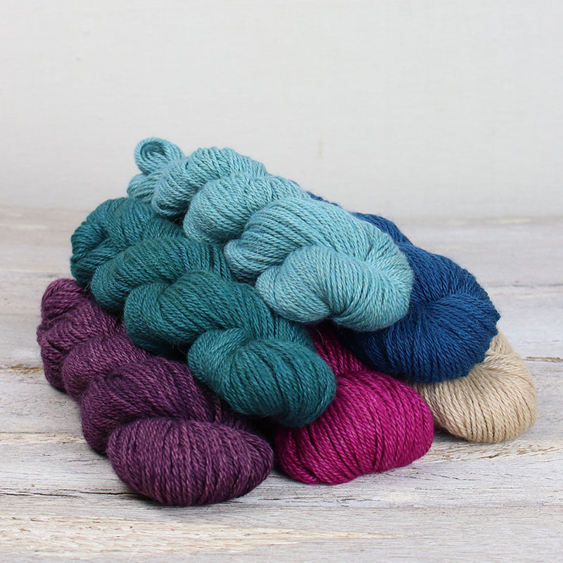 The Road to China blend was born from our days of owning a small mill back in Maine in the early days of The Fibre Co. Years of fibre exploration at the carding machine hand blending raw fleeces led to the pursuit of the perfect yarn made from truly luxurious fibres. The resulting Road to China blend creates a knit fabric with a soft halo but enough definition to explore subtle textures and shifting patterns. In keeping with the tone of gentle decadence that Road to China brings, we developed a colour palette that is inspired by nature’s jewels and dyed each hank to work in harmony with the raw fibres that go into the blend. Combining the light fawn of the baby alpaca with the soft tones of camel and cashmere as well as the lustrous sheen of silk gives the perfect base for subtle duotones that peek through our saturated colours. Road to China Light is the hank we reach for when we want to create something truly special. The 50g hanks are the perfect treat for dreary afternoons hidden away from the world for a few moments as we focus on our making.