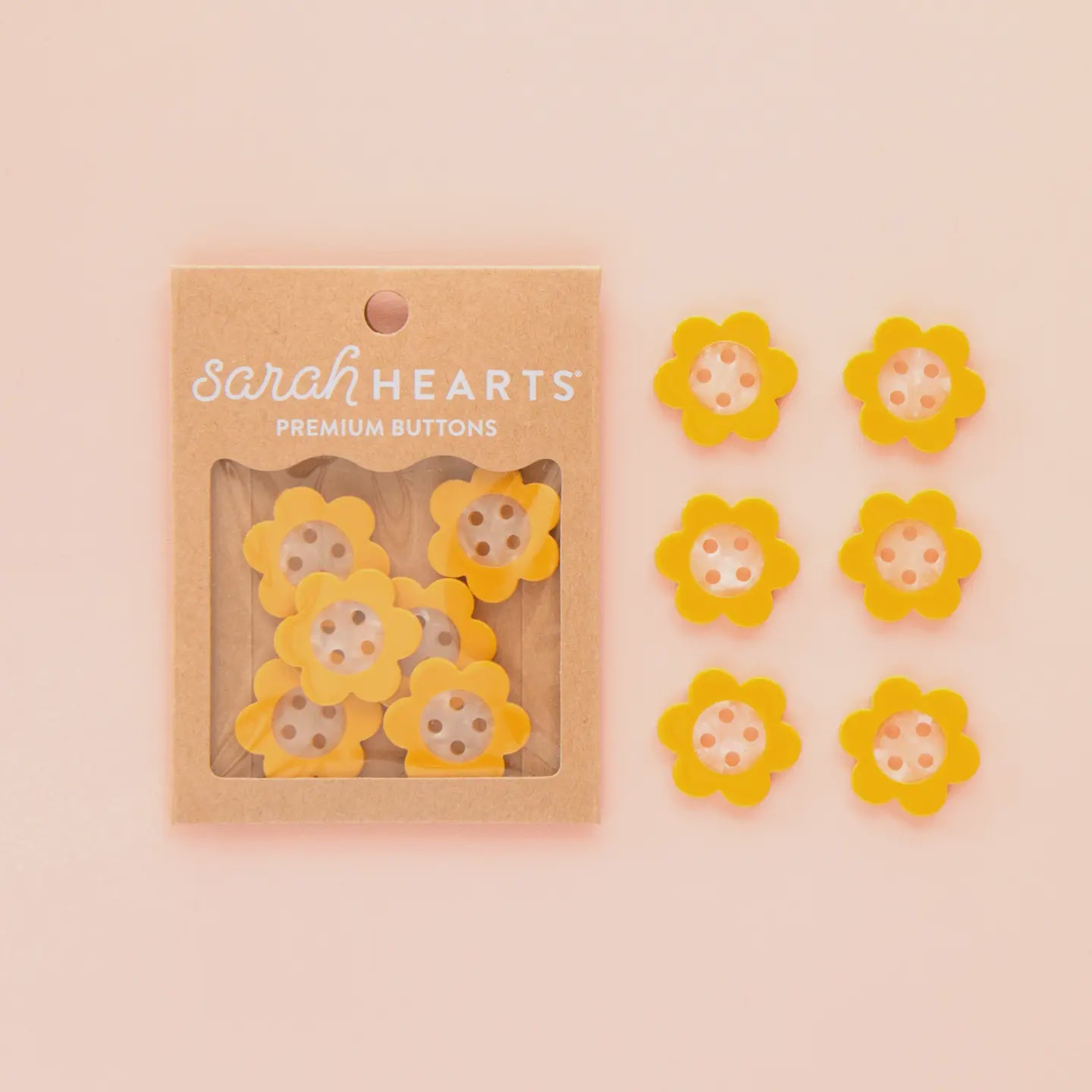 Give your projects a charming boost with these Large Yellow Daisy Buttons. Made from eco-friendly cellulose acetate, they feature an adorable daisy design with a pearly white center and mustard yellow petals. A perfect way to add a bright, playful accent to any garment or bag.